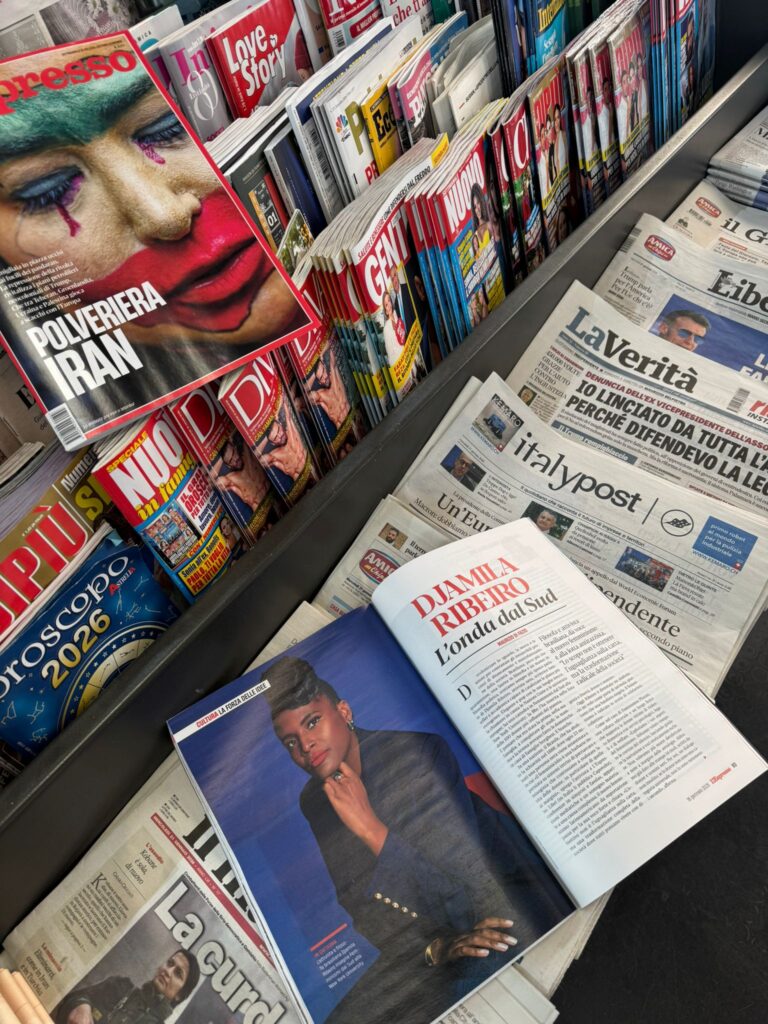 La présence de Djamila Ribeiro dans l’édition de cette semaine du magazine italien L’Espresso confirme sa place parmi les voix les plus influentes de la pensée critique contemporaine. Classée par la BBC parmi les 100 femmes les plus influentes du monde, Djamila a été interviewée par le journaliste Maurizio Di Fazio. L’entretien aborde des thèmes tels que le féminicide, le racisme structurel, le langage inclusif et le rôle des féminismes périphériques dans la transformation sociale.